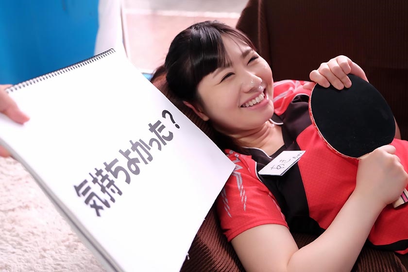 「私、タマに夢中です!」卓球のユニフォームに着替えて100の質問に連続で答える!日本代表級の返しをいくつも繰り出す彼女に、いきなりデカチン即ハメ!ハメてる間も質問のラリーは続く!果たして彼女は最後まで答えて賞金GETで、サーっ!!!て喜ぶことができるのか!?